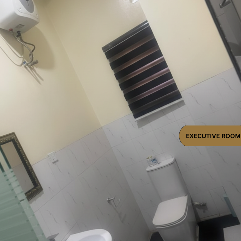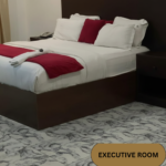 The Executive Room at Grand Chizet Hotels is designed for guests who appreciate a calm, elevated environment. It features a spacious room, clean towels, queen bed with premium linens, sofa with side table, tasteful wall frames, bedside  lamp and decor. An in-room tea & kettle set and a mini-fridge provide convenient refreshments.